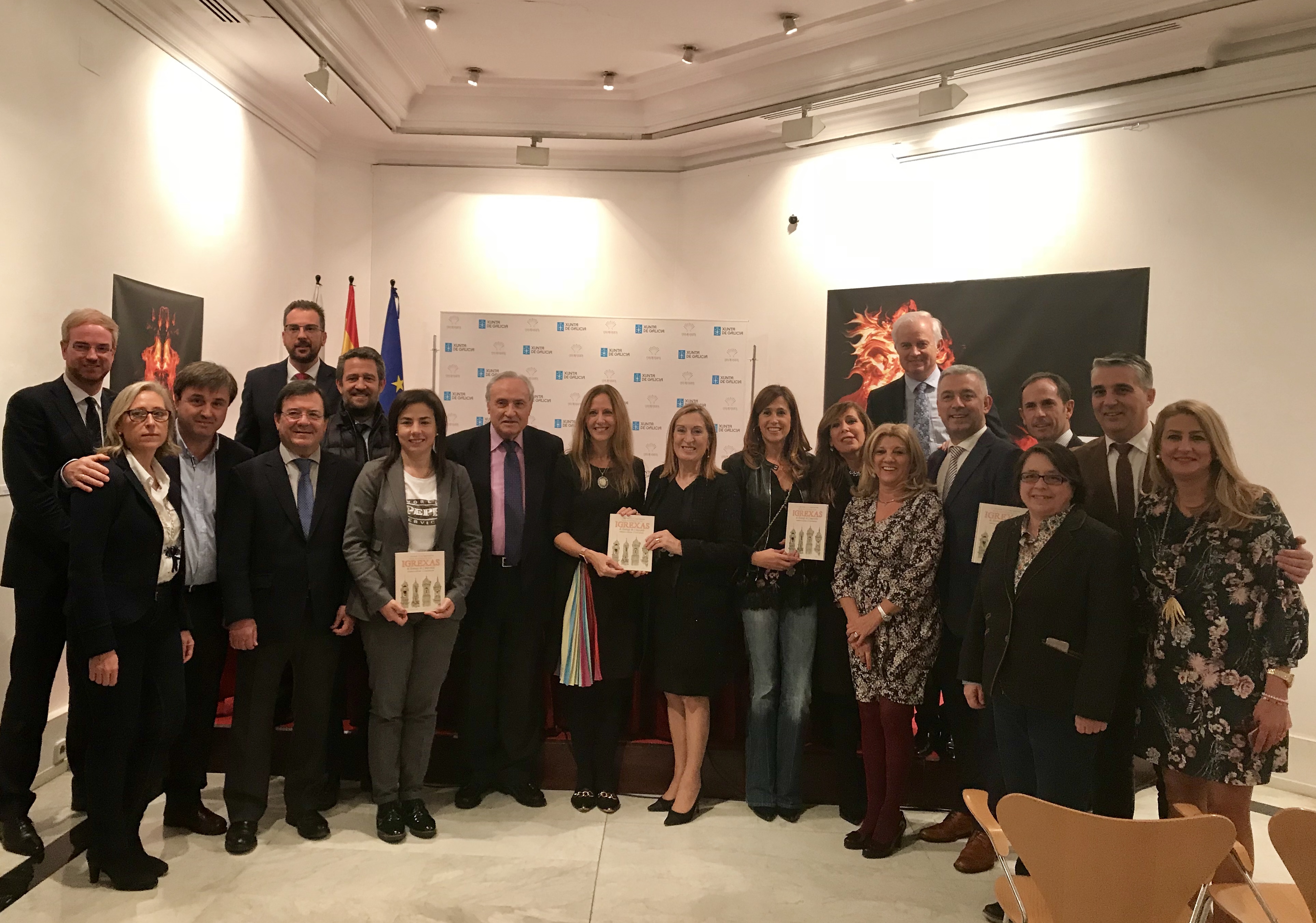 Madrid, 15 de novembro de 2017.-O secretario xeral de Política Lingüística, Valentín García, acompañou hoxe ao serán a historiadora Marta González na presentación da 'Guía ilustrada das igrexas de Santiago de Compostela', nun acto que se celebrou na Casa de Galicia e no que tamén participou o delegado da Xunta en Madrid, José Ramón Ónega. A obra sae do prelo da man de El Patito Editorial, con ilustracións de Joaquín González Dorao, e conta co apoio da Secretaría Xeral de Política Lingüística. Ao acto asisitu tamén a presidenta do Congreso, Ana Pastor.