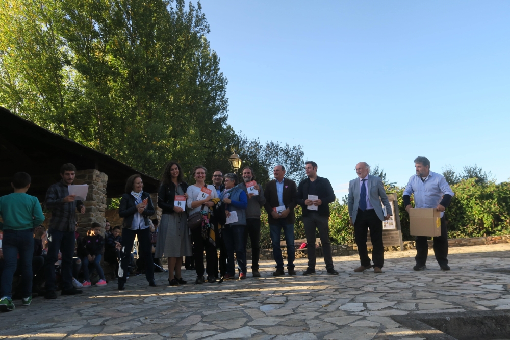 Carucedo (León), 20 de outubro de 2018.- A Pedanía das Médulas, en Carucedo, acolleu a entrega dos I Premios Morales para a Promoción da Lingua Galega no Bierzo. Tras os pasos de Morales: os magostos, convocados no marco do Programa de Promoción da Lingua Galega no Bierzo que coordina desde a Xunta de Galicia a Secretaría Xeral de Política Lingüística. Premiáronse, en tres categorías diferentes, traballos dos 19 centros de estudo do galego desta área galegofalante dos territorios de León e de Zamora, seleccionados pola súa orixinalidade, creatividade e calidade estética e lingüística, que integran un novo volume editado por Positivas. O acto, no que participou a subdirectora xeral de Política Lingüística, María Lourdes Batán, incluíu un contacontos a cargo de Paula Carballeira e pechouse cun magosto popular.
