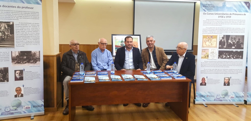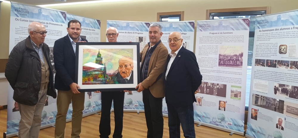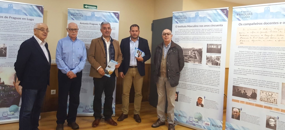 VolverCerdedo-Cotobade (Pontevedra), 4 de novembro de 2019.- O secretario xeral de Política Lingüística, Valentín García, e o alcalde, Jorge Cubela, visitaron hoxe no Edificio Multiúsos de Cotobade a mostra Os nove anos de Fraguas en Lugo, promovida polo colectivo Egeria e por Galicia Dixital co apoio da Consellería de Cultura e Turismo, no marco da programación conmemorativa das Letras Galegas 2019 da Xunta de Galicia. O proxecto expositivo itinerante está conformado por 12 paneis e compleméntase cun libro que recompila textos dos antigos alumnos impulsores da iniciativa, Manuel Regueiro Tenreiro, Paco Martín, Xulián Parga e Xulio Xiz, canda os doutras amizades e co web fraguasenlugo.org. Constitúe un achegamento á pegada que o mestre cotobadés deixou durante a súa estadía na cidade das murallas e poderase visitar durante esta semana no concello pontevedrés.
