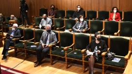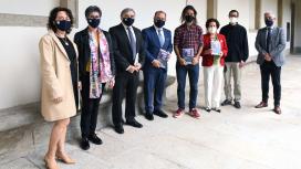 VolverSantiago de Compostela, 26 de maio de 2021.- O secretario xeral de Política Lingüística, Valentín García, asistiu hoxe ao mediodía ao Acto Literario do Día das Letras Galegas 2021, na honra de Xela Arias, organizado pola Universidade de Santiago de Compostela (USC). A homenaxe, que se celebrou no Salón Nobre de Fonseca, incluíu a conferencia "Entenderme e entender o mundo: un problema de palabras", que pronunciou a profesora María Xesús Nogueira, e lectura de textos poéticos da autora á que a Real Academia Galega lle dedicou o 17 de maio a cargo de estudantado do Grao en Lingua e Literatura.