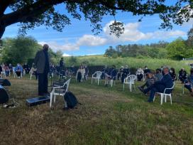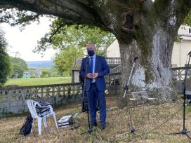 Castro de Rei (Lugo), 3 de xuño de 2021.- A Xunta de Galicia, representada no seu secretario xeral de Política Lingüística, Valentín García, e no seu delegado territorial en Lugo, Javier Arias, participou hoxe á tarde no acto de homenaxe ao sacerdote, latinista e poeta chairego Xosé Crecente Vega (Castro de Rei, Lugo, 1896 - Segovia, 1948) organizado pola Comisión Crecente Vega e polo Concello de Castro de Rei, coa colaboración da Consellería de Cultura, Educación e Universidade e con motivo do 125º aniversario do seu nacemento.