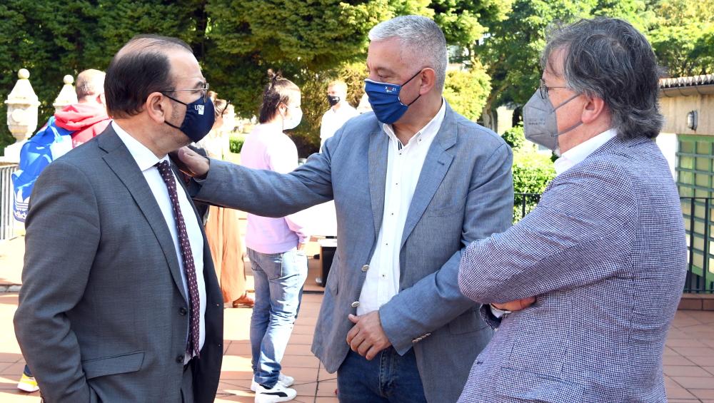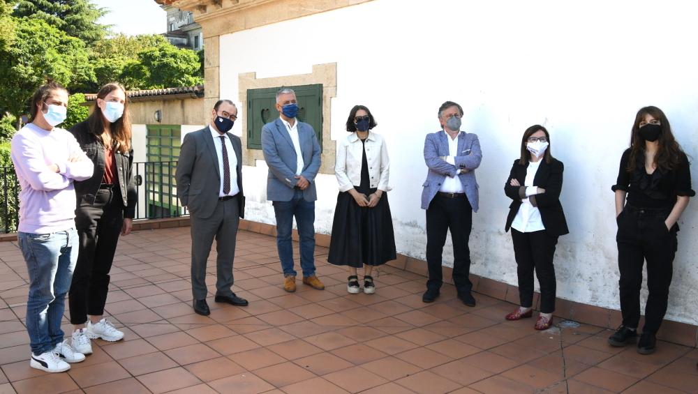 Santiago de Compostela, 9 de xullo de 2021.- O secretario xeral de Política Lingüística, Valentín García, mantivo un encontro cos participantes no festival de artes escénicas da Universidade de Santiago de Compostela USCénica. No encontro participaron tamén o reitor da dita Universidade, Antonio López, e a vicerreitora de Igualdade Cristina López.