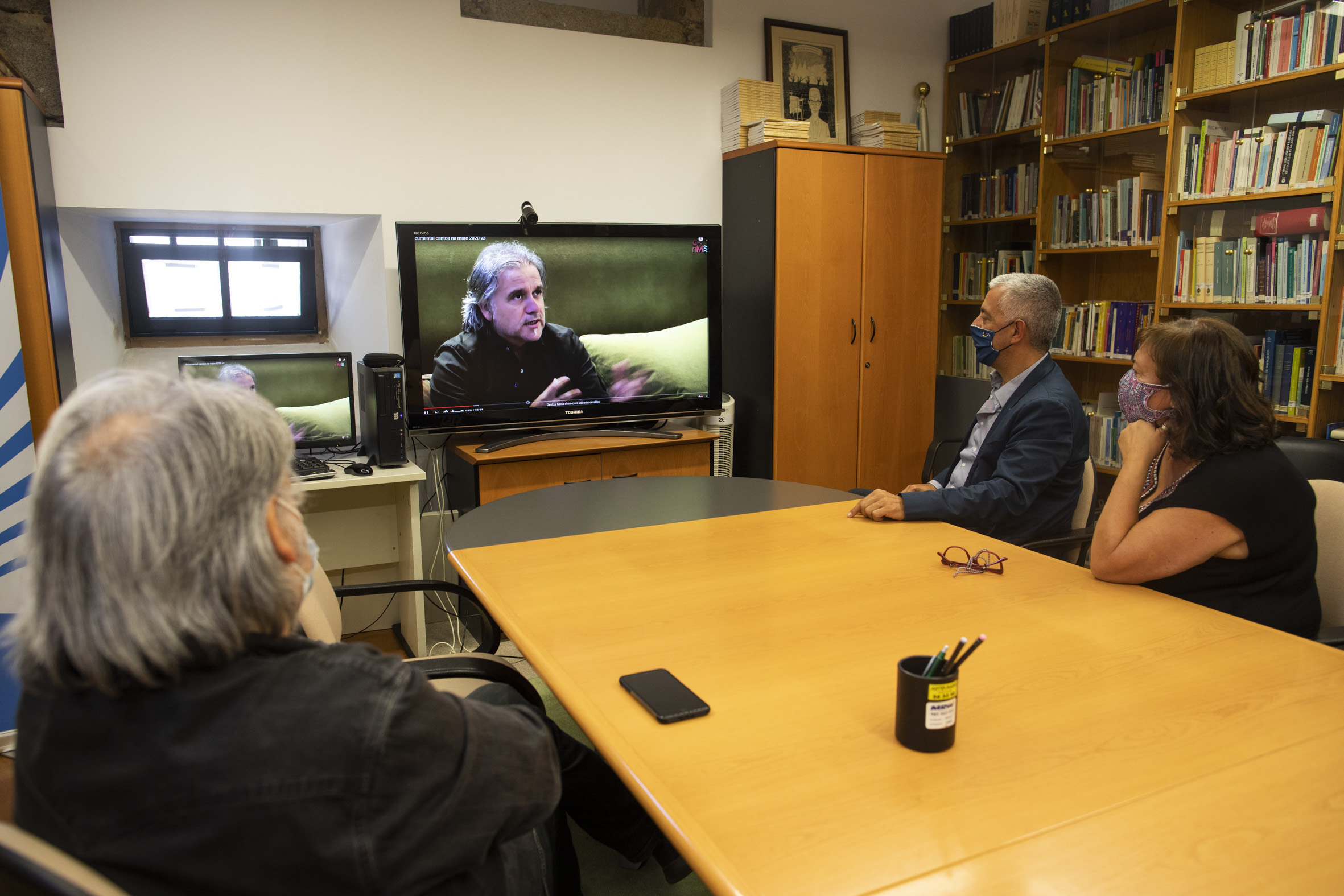 VolverSantiago de Compostela, 22 de setembro de 2021-. O secretario xeral de Política Lingüística, Valentín García, participou esta tarde na presentación do documental “Cantos na Maré”, unha iniciativa realizada ao abeiro do Fondo de Proxectos Culturais da Xunta de Galicia que recolle a historia e traxectoria do festival internacional de música lusófona- que chega mañá a Compostela na súa 17º edición- dende os seus inicios ata a hoxe. Canda Valentín García tamén estiveron presentes no acto, que acolleu o Pazo de San Roque, Víctor Belho, de Nordesía producións e promotor de Maré 21, e Uxía, directora do documental. O documental poderá verse a partir de hoxe na ligazón www.lingua.gal/cantos-na-mare
