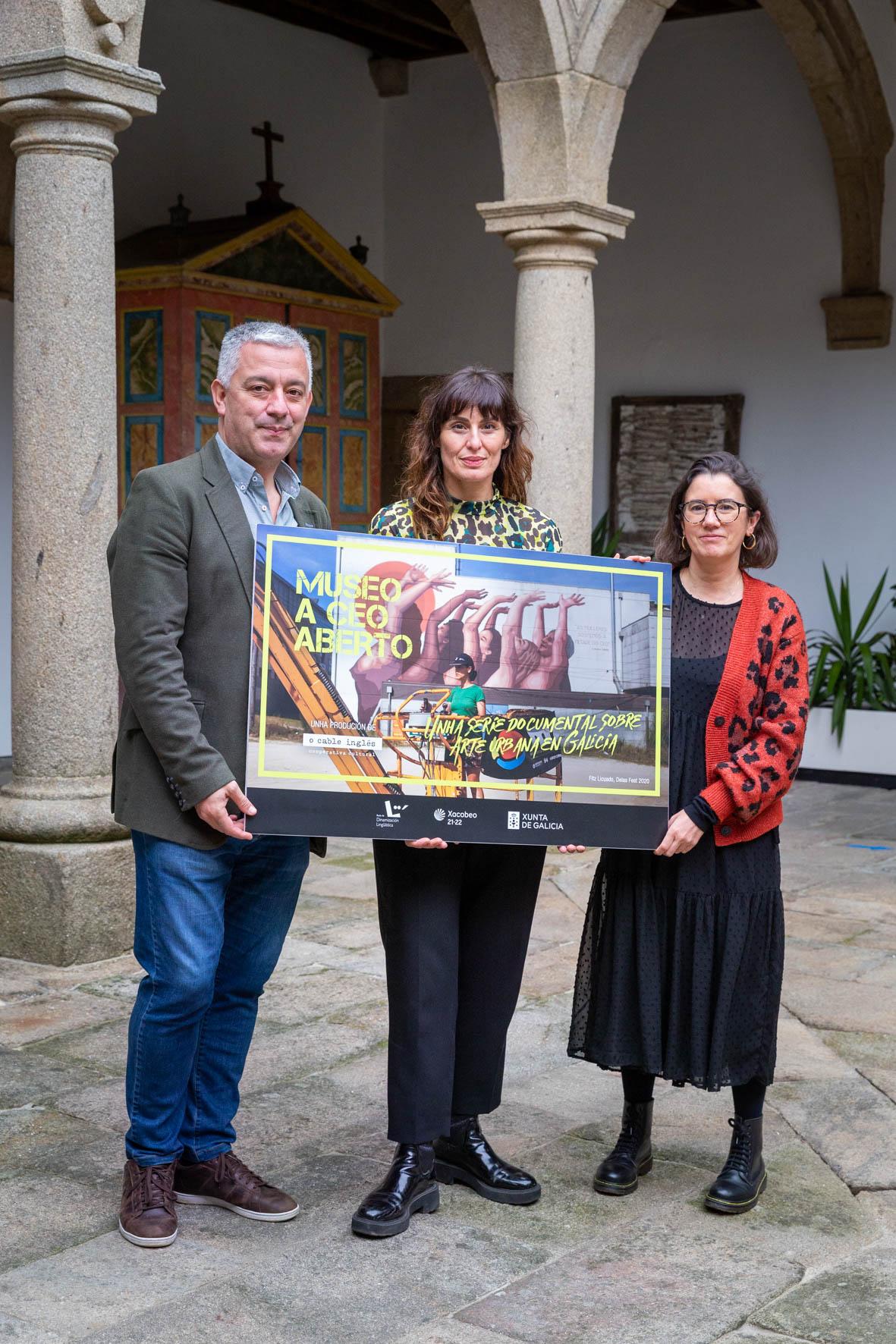 Santiago de Compostela, 3 de marzo de 2022.- O secretario xeral de Política Lingüística, Valentín García, participou esta mañá na presentación da serie documental Museo a ceo aberto, realizada pola cooperativa O Cable Inglés ao abeiro do Fondo de Proxectos Culturais Xacobeo 21-22. Estruturada en sete capítulos dunha duración aproximada de 20 minutos, esta serie mapea as principais mostras de arte urbana de Galicia, onde nos últimos anos foron xurdindo artistas, iniciativas e eventos que conseguiron xerar auténticas transformacións na paisaxe urbana das cidades, creando auténticos museos a ceo aberto.