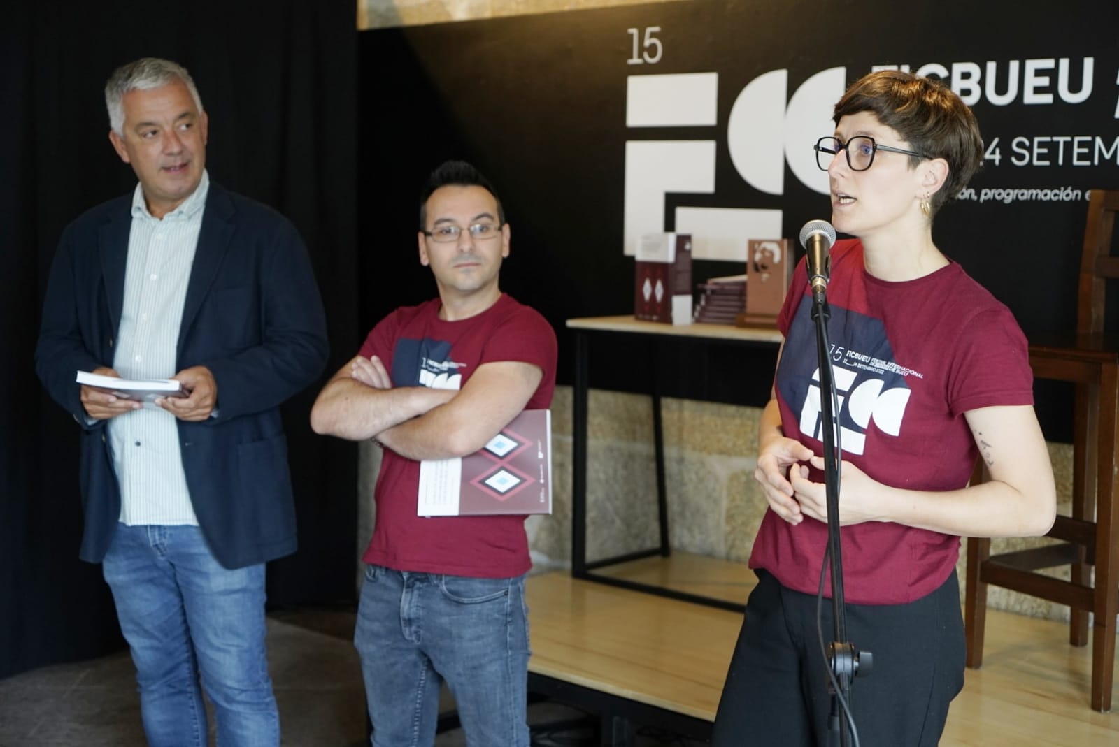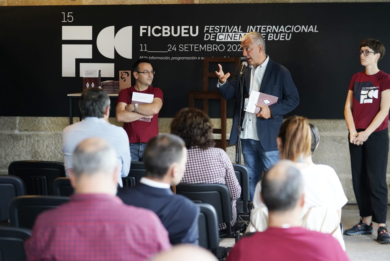 Xunto ao secretario xeral tamén interviñeron Nerea Lores, da dirección do festival, e Severiano Casalderey, subdirector do festival e autor dos cadernos FICBUEU, quen se encargou de facer un repaso polos contidos do caderno.