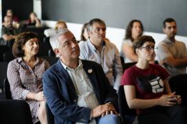 Bueu (Pontevedra), 17 de setembro 2022.- O secretario xeral de Política Lingüística, Valentín García, participou hoxe en Bueu na presentación do Caderno FICBUEU#3, un volume que baixo o título As prácticas do Instituto de Investigacións e Experiencias Cinematográficas e a Escola Oficial de Cinematografía como primordio dun novo cinema español (1947-76) recolle a historia das curtametraxes creadas nesta institución académica que marcou a semente dunha nova xeración de cineastas.
