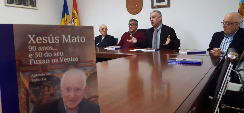 Paradela, 18 de xaneiro de 2023.- O libro, publicado por Brandán Comunicación coa colaboración da Consellería de Cultura, Educación, FP e Universidades, está coordinado por Antonio Giz e Xulio Xiz e ofrece un percorrido pola traxectoria vital de Xesús Mato co gallo do seu 90 aniversario o pasado outubro e do medio século da creación do grupo “Fuxan os ventos”, da que foi alma mater, sendo tamén da súa autoría a letra e a música da canción que deu nome ao grupo.