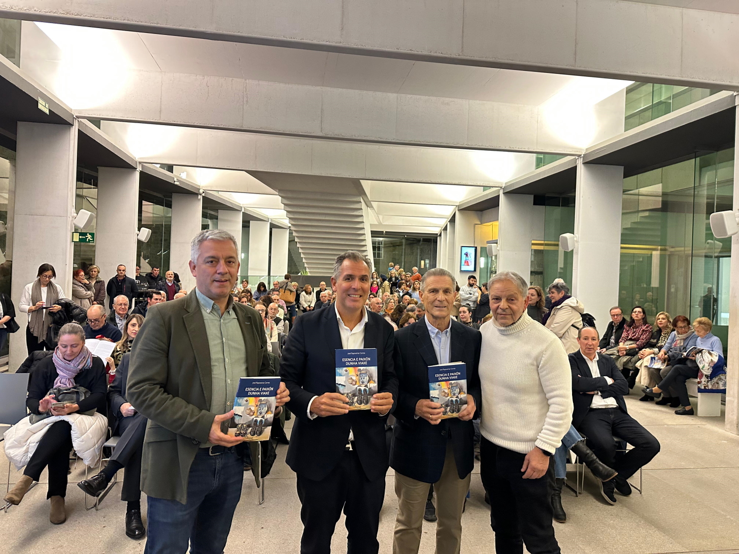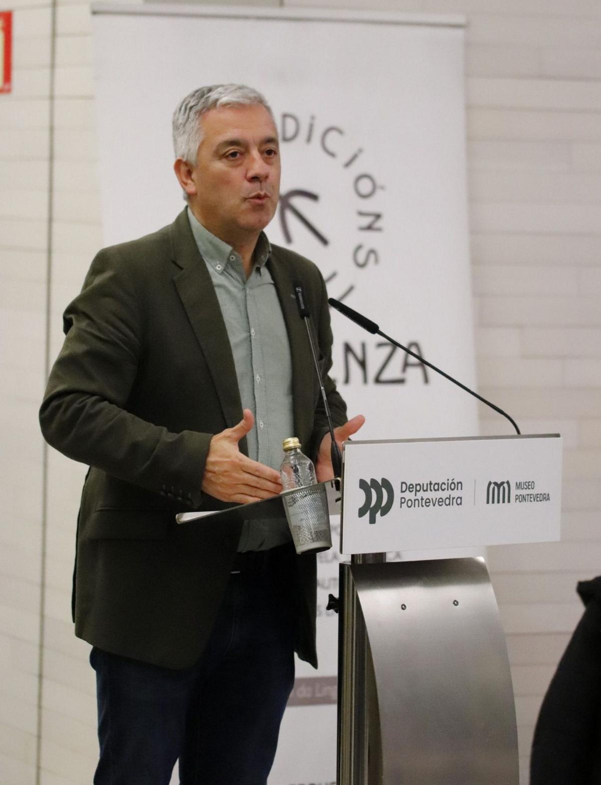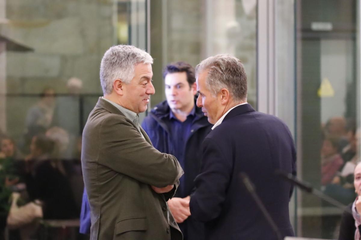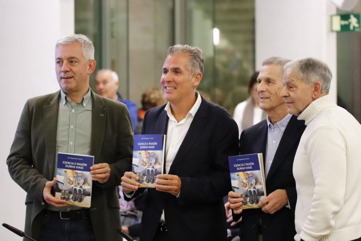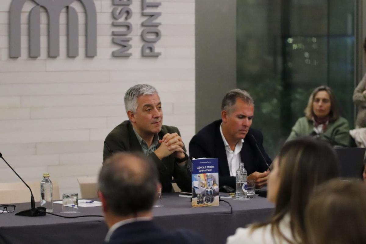 Pontevedra, 18 de decembro de 2024.- O secretario xeral da Lingua, Valentín García, acompañou hoxe ao serán a José Raposeiras na presentación do libro Esencia e paixón dunha viaxe, nun acto que se celebrou no Museo de Pontevedra.