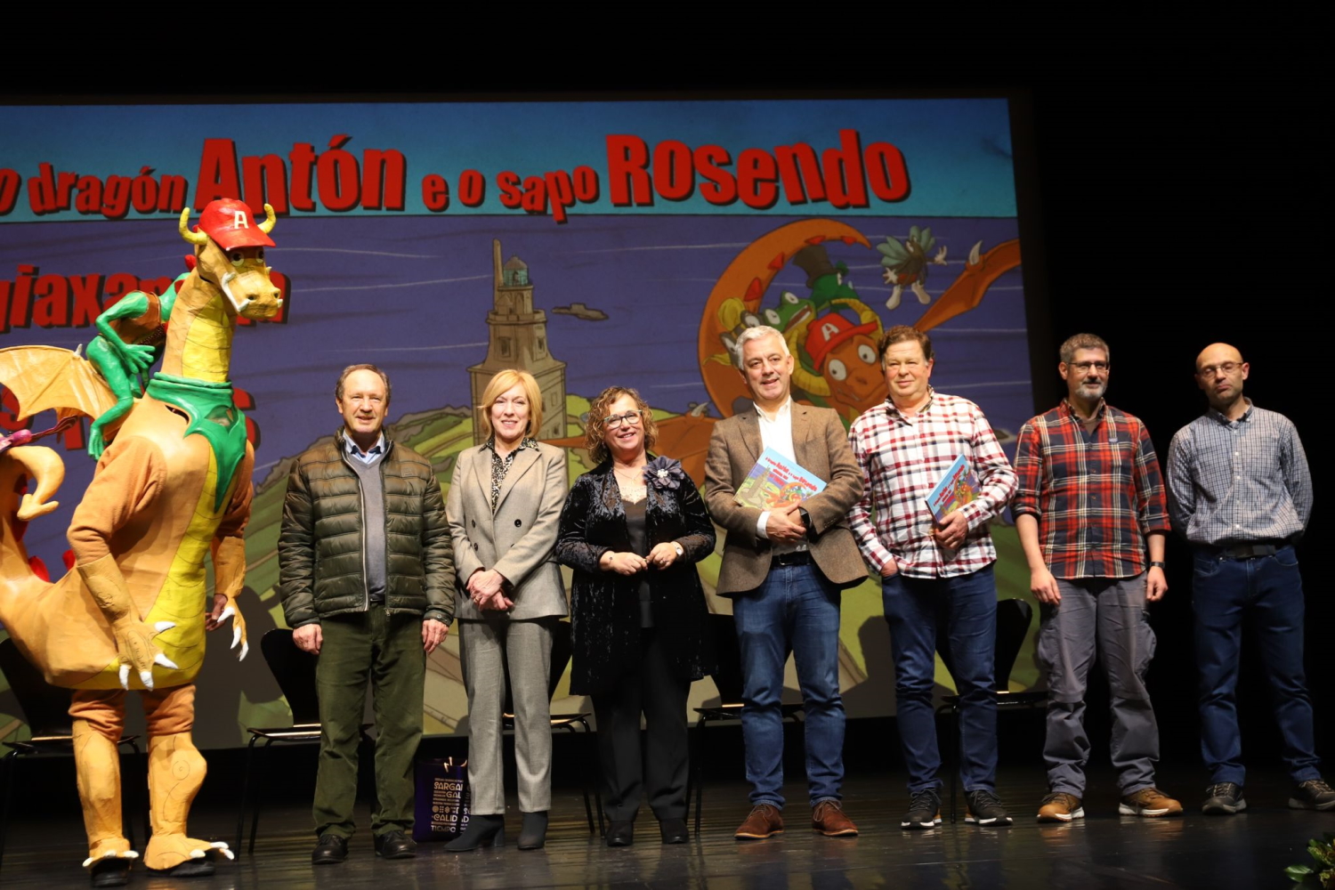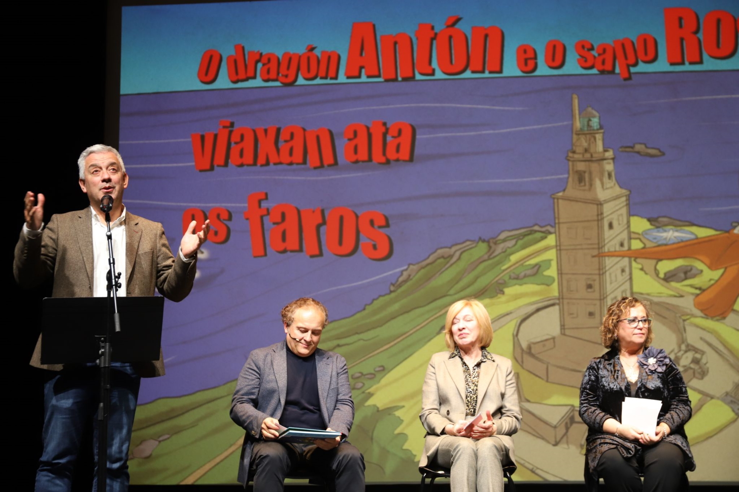 Valentín García acompaña a Rosalía Morlán na presentación da obra O dragón Antón e o sapo Rosendo viaxan ata os faros
