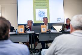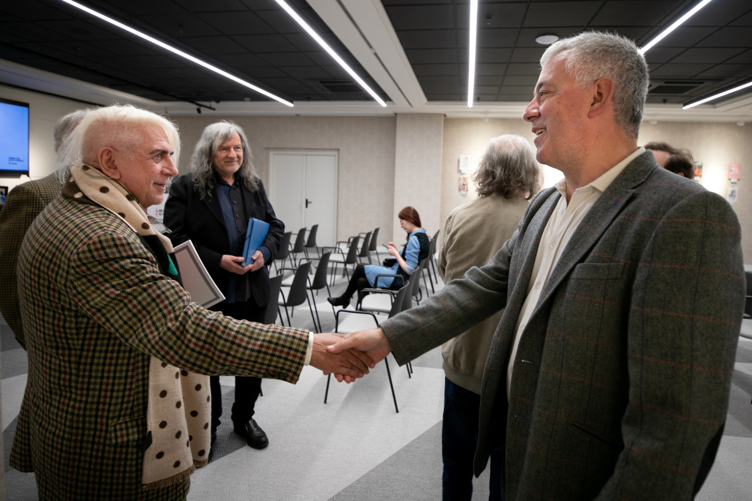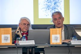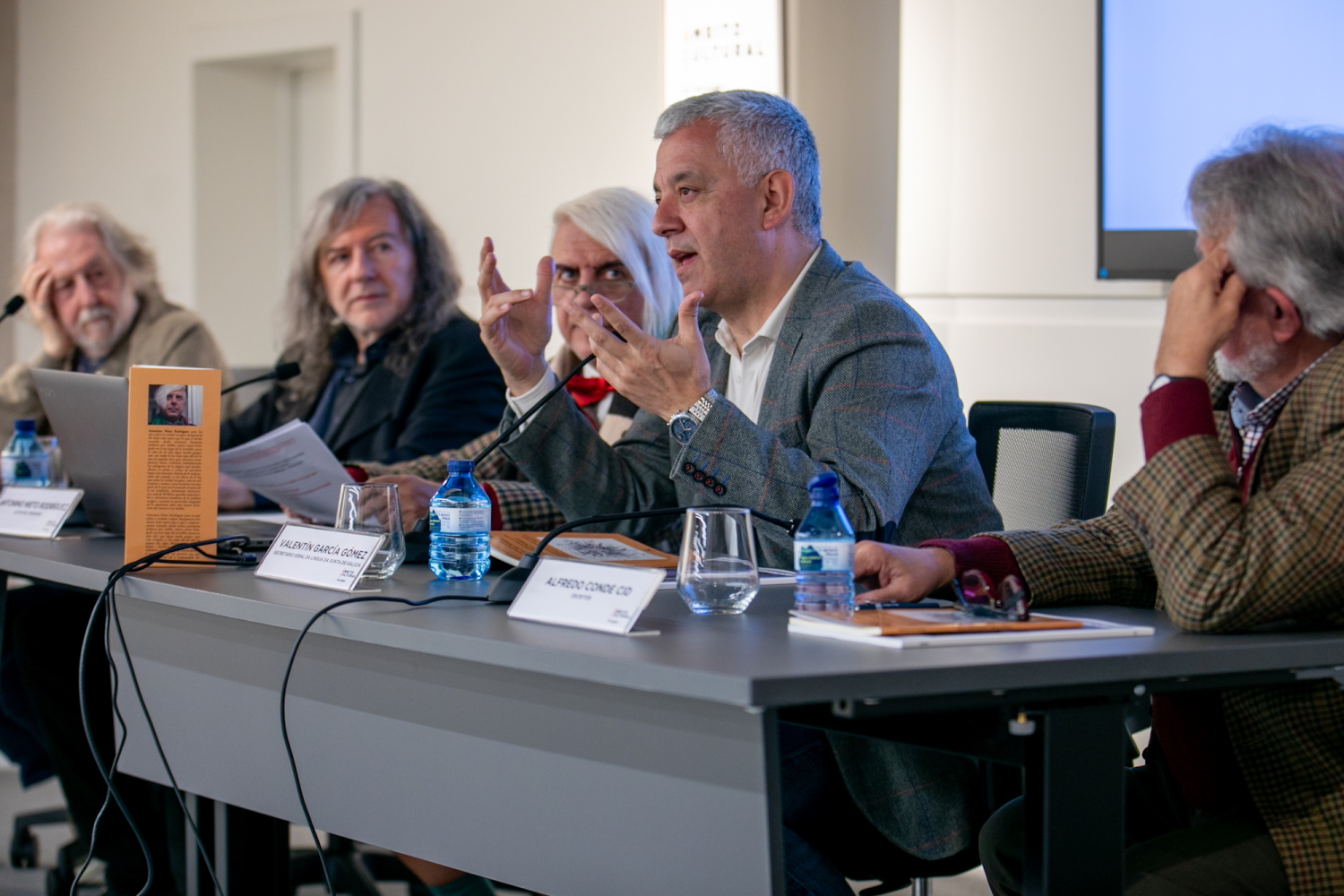 Valentín García acompaña a Antonino Nieto na presentación da obra A lingua do anxo ou carrusel de poemas con viño