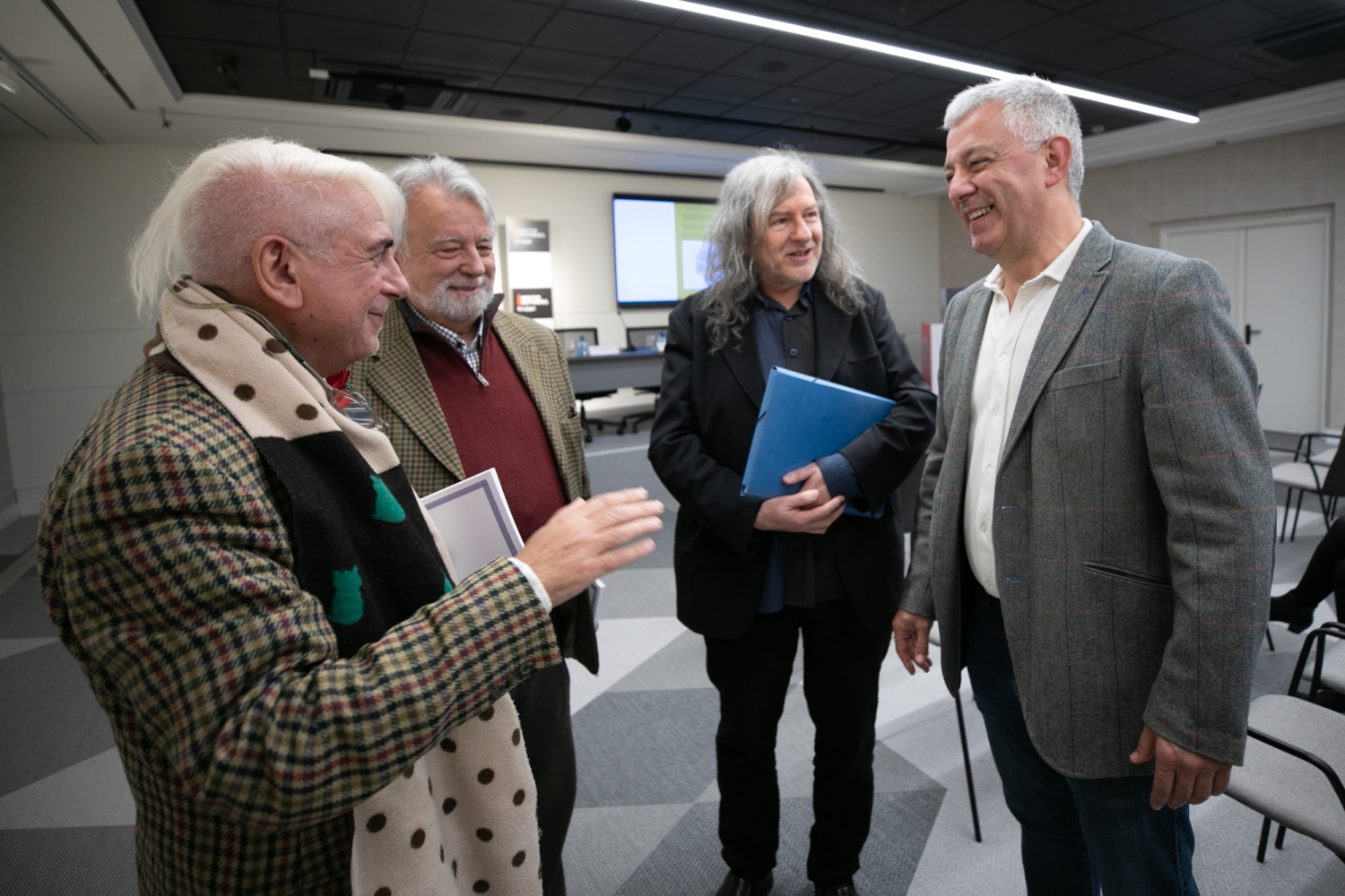 VolverSantiago de Compostela, 22 de abril de 2025.- O secretario xeral da Lingua, Valentín García, acompañou a Antonino Nieto na presentación do poemario A lingua do anxo ou carrusel de poemas con viño. Participaron canda eles, Alfredo Conde, Xosé Perozo e Claudio Rodríguez Fer, nun acto que acolleu a Sala de Ámbito Cultural de El Corte Inglés de Santiago de Compostela.