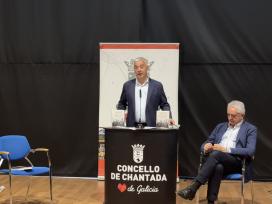 VolverChantada (Lugo), 23 de maio de 2025.- O secretario xeral da Lingua, Valentín García, participou este serán na presentación da obra O agrarismo nas terras de Chantada, de Antonio Paz Vázquez, gañadora do XVII Certame de Investigación Condado de Pallares. A iniciativa recoñece traballos de investigación lingüística en galego e conta coa colaboración da Consellería de Cultura, Lingua e Xuventude, a través da Secretaría Xeral da Lingua e da Dirección Xeral de Cultura.