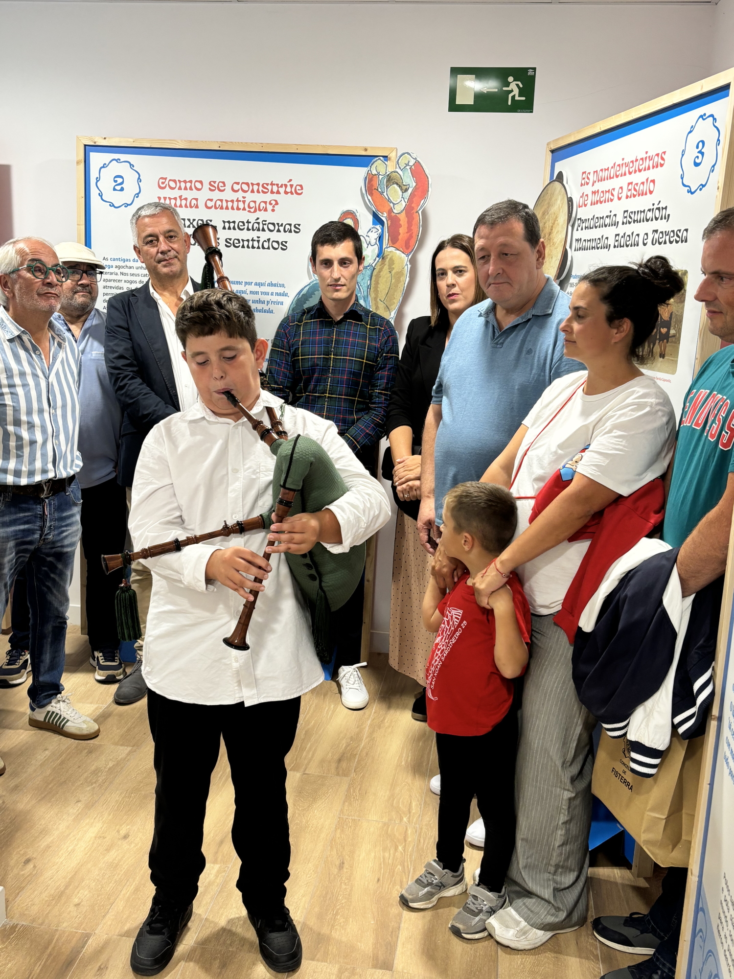 VolverFisterra (A Coruña), 1 de outubro de 2025.- O secretario xeral da Lingua, Valentín García, inaugurou hoxe ao serán no Mercado Cultural canda o rexedor fisterrán, Luis Insua, a mostra Cantade todas a unha. O cantigueiro popular galego, conmemorativa das Letras Galegas 2025. A exposición chega a Fisterra despois de facer parada en Malpica de Bergantiños e en Muxía e poderase visitar durante o mes de outubro, con entrada libre e de balde, antes de seguir o seu percorrido polo concello coruñés de Cerceda e polo Museo do Pobo Galego, a finais de ano.