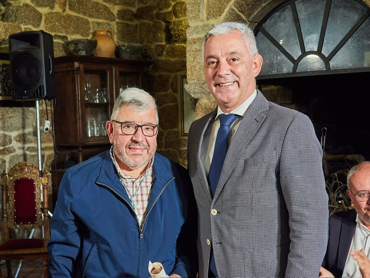 Ribadavia (Ourense), 5 de outubro de 2025.- O secretario xeral da Lingua, Valentín García, participou hoxe en Esposende no acto de entrega da XVII edición dos Premios Bacelos de Prata, que recoñecen o labor de empresas, entidades ou persoas exemplares no seu compromiso co idioma. Nesta ocasión recaeron en Embutidos Lalinense S.L. e en Adegas Bordel. Participaron ademais de García Gómez e as premiadas o alcalde da localidade, César Fernández Gil; o presidente da Asociación Álvaro de las Casas, Avelino Muleiro; o presidente do Foro Enrique Peinador, Xosé González, e o coordinador da Irmandade Galega de Adegueiros e Agroalimentarios, Xosé Carballido.