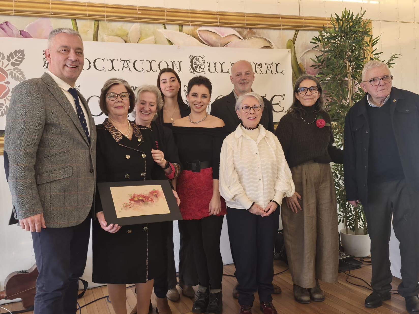 Santiago de Compostela, 31 de xaneiro de 2026.- O secretario xeral da Lingua, Valentín García, participou hoxe no acto de entrega da insignia de Ouro da Asociación Cultural A Rocha Forte a Leonor Magariños Barros pola súa dedicación continuada ao longo de máis de 30 anos ao cultivo e á divulgación sobre a camelia.