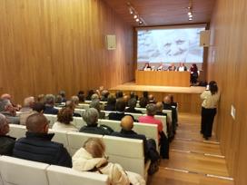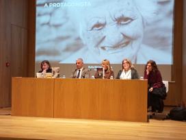 Valentín García acompaña a Xulia Marqués na presentación da obra que homenaxea a Perfecta Ogaza Fontangordo en Lugo