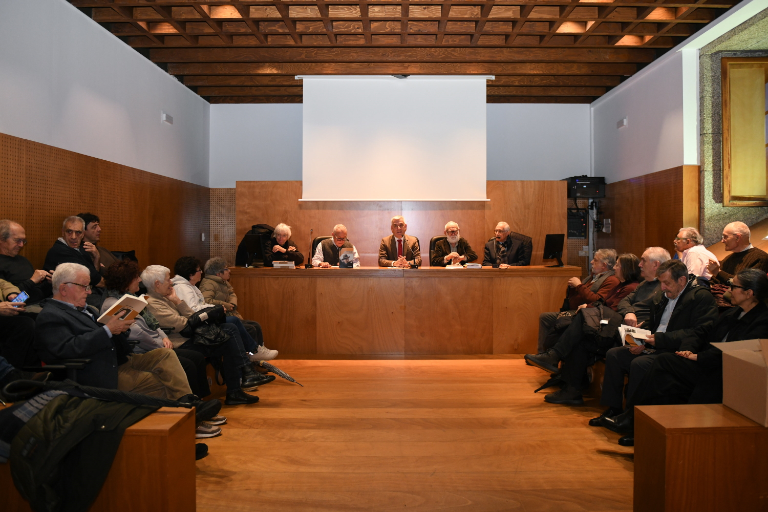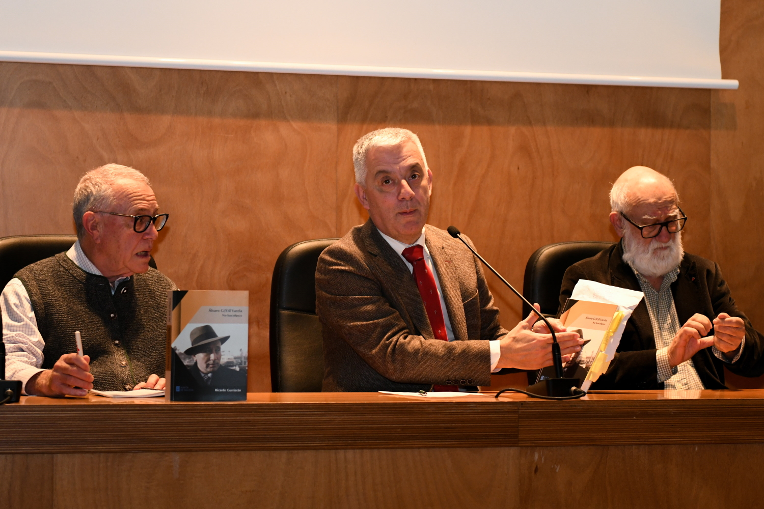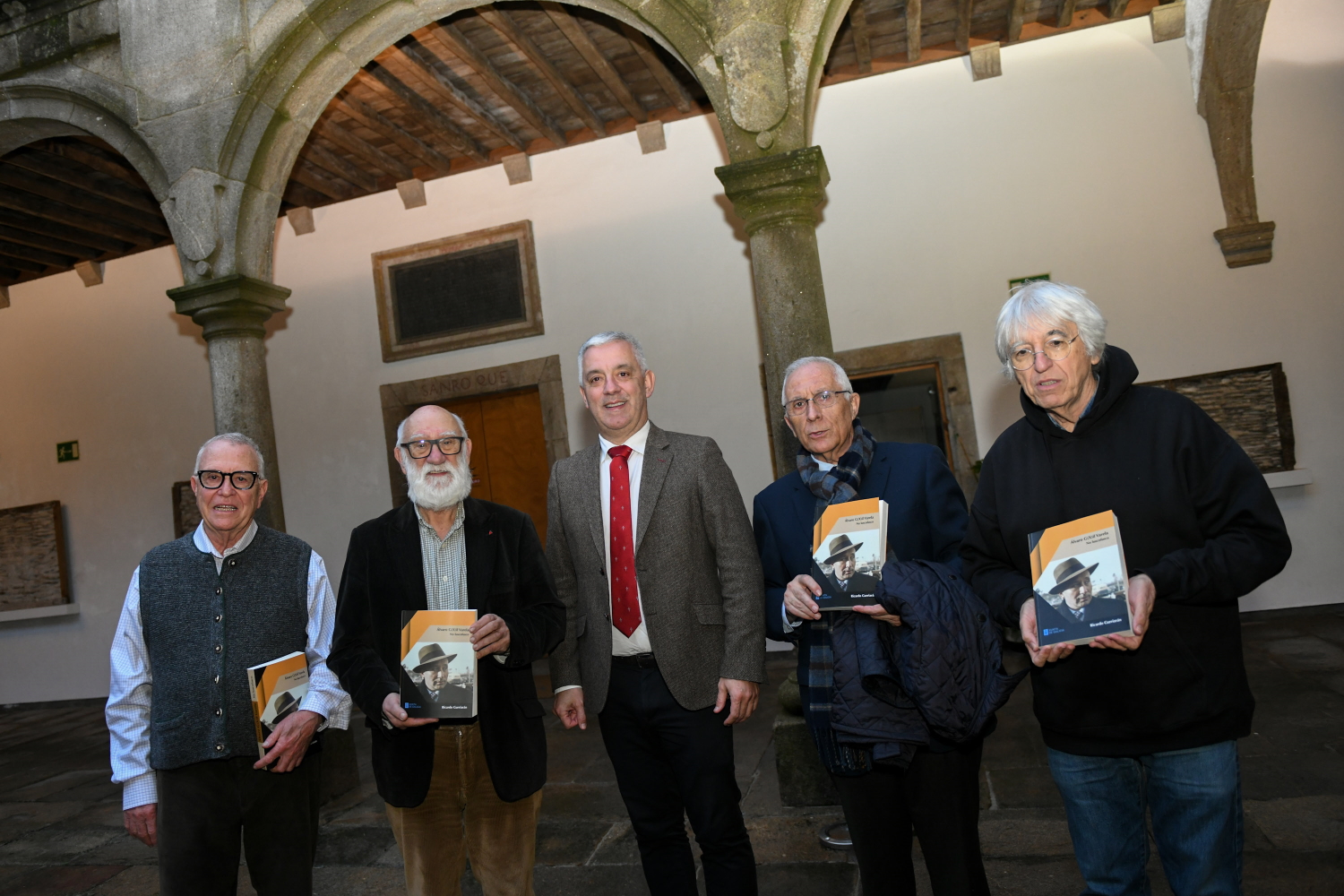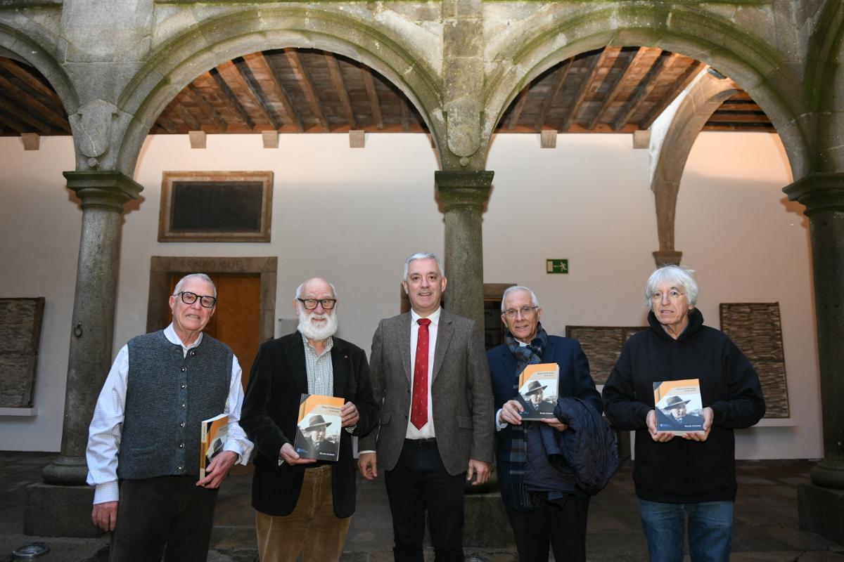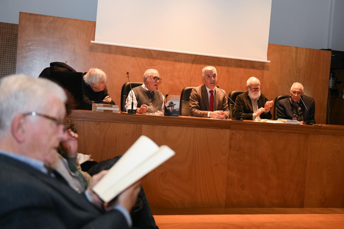 Santiago de Compostela, 10 de febreiro de 2026.- O secretario xeral da Lingua, Valentín García, participou hoxe ao serán no acto de presentación da obra Álvaro Xil Varela. No lusco fusco, do historiador Ricardo Gurriarán, editado polo Foro Enrique Peinador. No acto participaron, canda o secretario xeral e o autor, Xosé González, presidente do Foro Enrique Peinador; e os profesores Xoán Carmona e Honorio Cardoso.