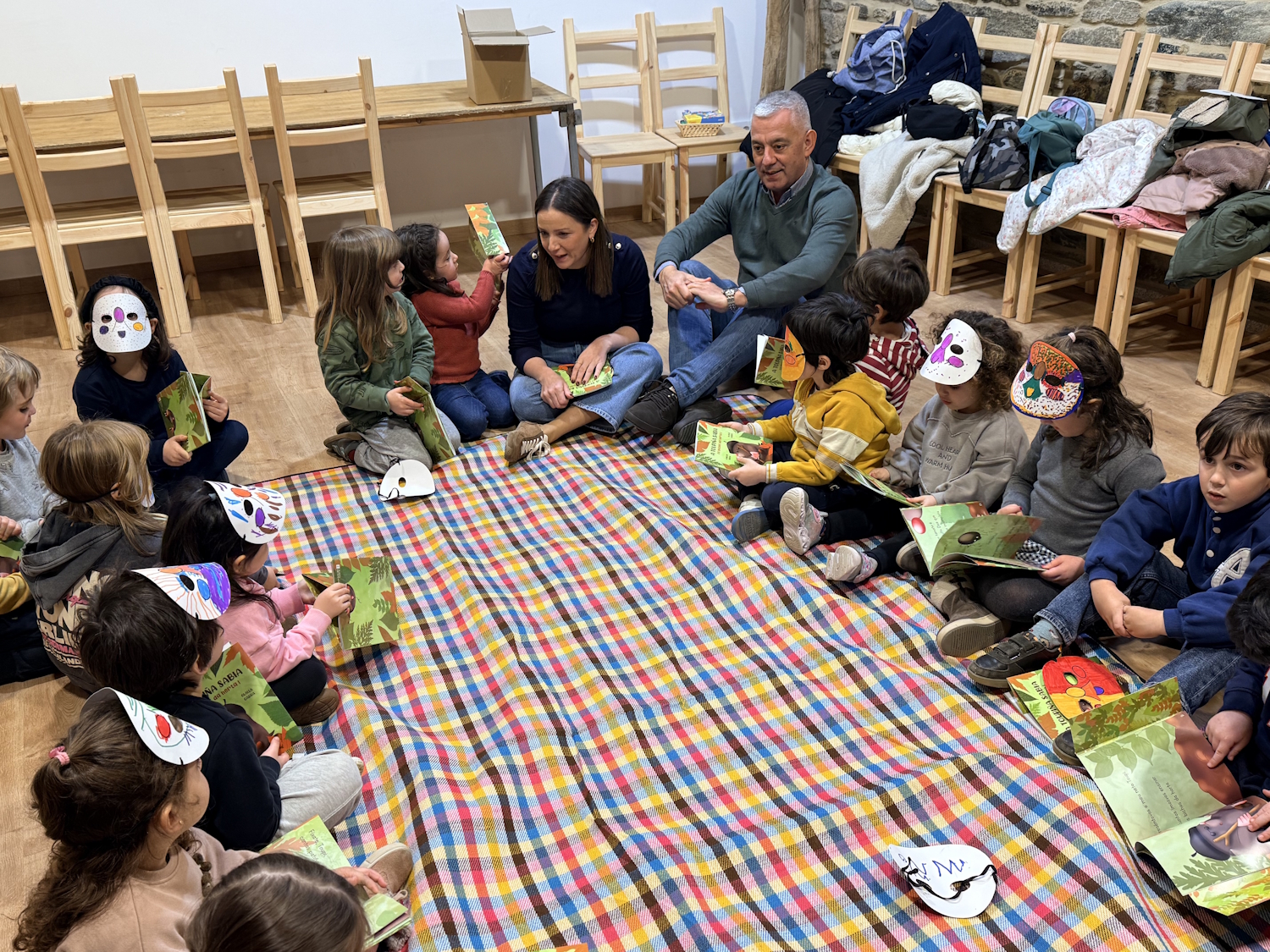 VolverLalín (Pontevedra), 2 de marzo de 2026.- O secretario xeral da Lingua, Valentín García, participou na presentación do libro A toupiña sabia, de Carlos Brea e Olalla Garra, que acolleu a escola infantil de Donramiro.