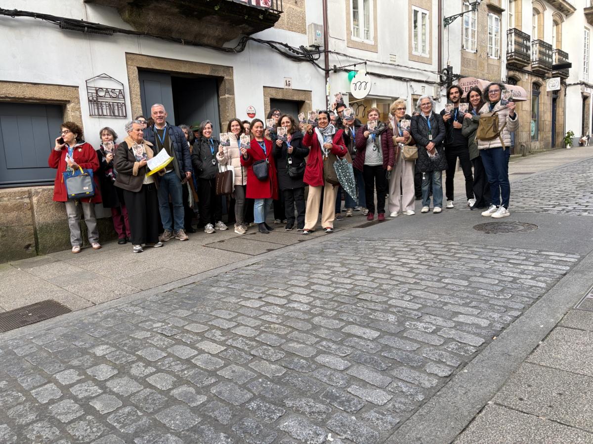 Santiago de Compostela, 25 de marzo de 2026.- O secretario xeral da Lingua, Valentín García, participou no roteiro A Compostela de Begoña Caamaño, que percorreu os principais espazos composteláns frecuentados pola autora homenaxeada polas Letras Galegas 2026 da man da historiadora Encarna Otero. O responsable da Lingua tamén participou, a continuación, na presentación da obra homónima, editada por El Patito Editorial no marco da programación das Letras Galegas 2026 apoiada pola Xunta de Galicia.