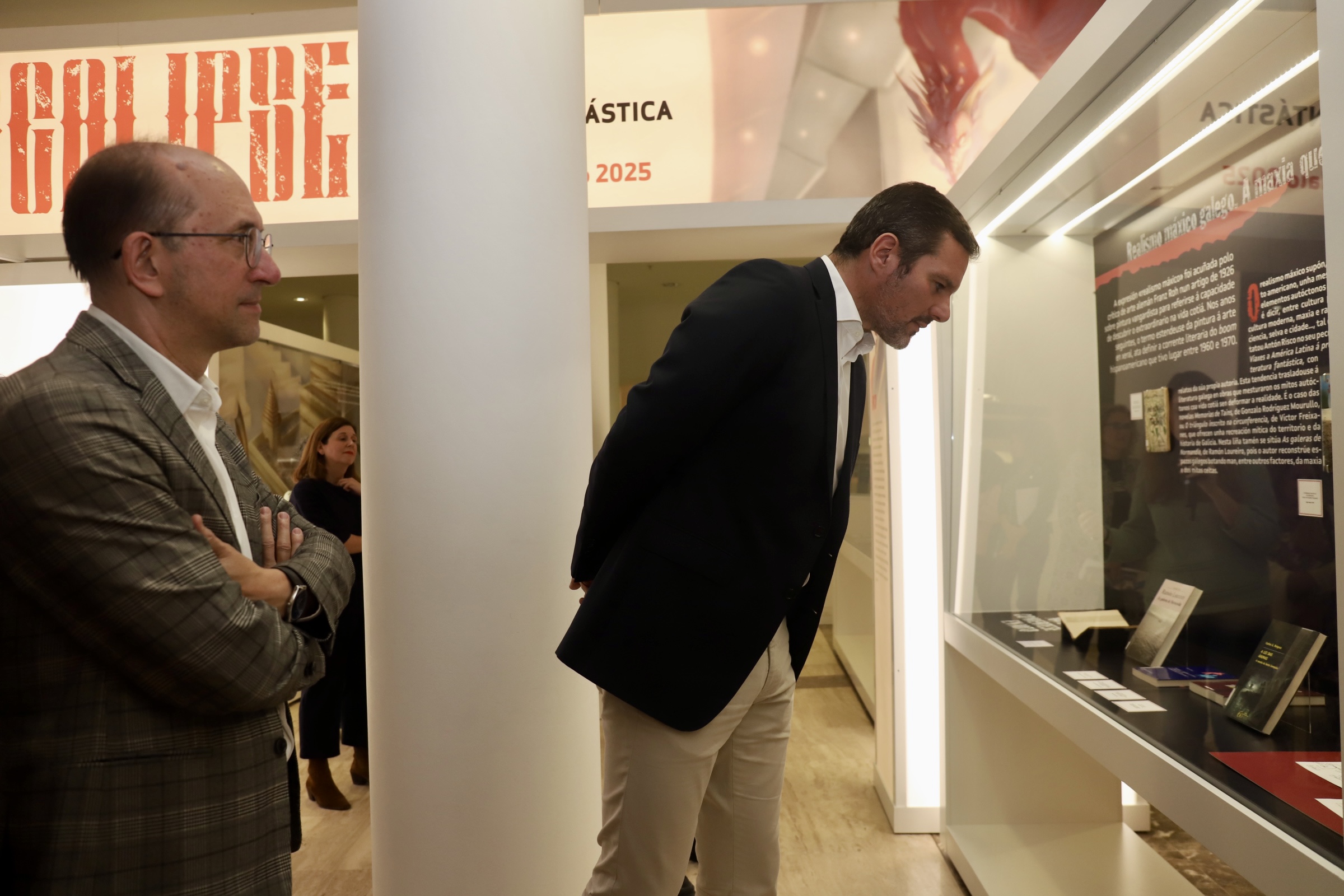 O conselleiro de Cultura, Lingua e Xuventude, José López Campos, acompañado polo director xeral de Cultura, Anxo M. Lorenzo, inaugurou esta tarde na Biblioteca de Galicia a exposición Do soño á apocalipse. Os vieiros da literatura fantástica en galego, unha mostra que, resaltou, “pon de manifesto a ampla creación que existe neste xénero na nosa lingua, ao que contribúen as traducións ao galego de gran cantidade de autores e autoras de renome internacional”.