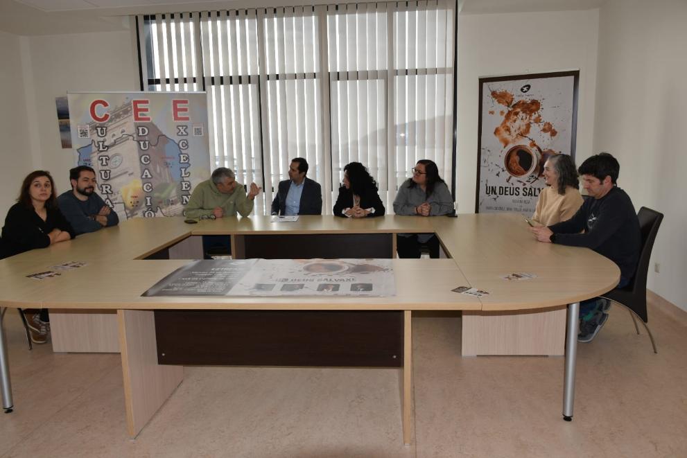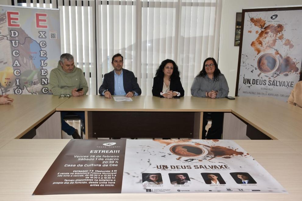 O director da Axencia Galega das Industrias Culturais, Jacobo Sutil, interveu xunto ao equipo artístico e ás representantes municipais na presentación das primeiras funcións de Un deus salvaxe, que terán lugar o venres e o sábado, ás 20,30 h. no Auditorio Baldomero Cores da Casa da Cultura de Cee, como inicio dunha xira galega que xa ten pechadas unha decena de datas en Ames, Carballo, A Coruña, Santiago de Compostela, Oleiros e Ourense.