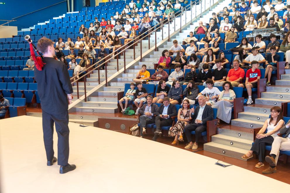 Máis de 300 escolares de primeiro e segundo de Educación Secundaria participaron hoxe na Cidade da Cultura, en Santiago de Compostela, na gala de clausura da primeira edición do programa radiofónico Fala que fala, organizado por Radio Líder co apoio da Xunta “contribuíndo a incentivar a rapazada a incrementar o uso do galego nos seus espazos creativos e de lecer”, segundo o puxo en valor na súa intervención o secretario xeral da Lingua, Valentín García.