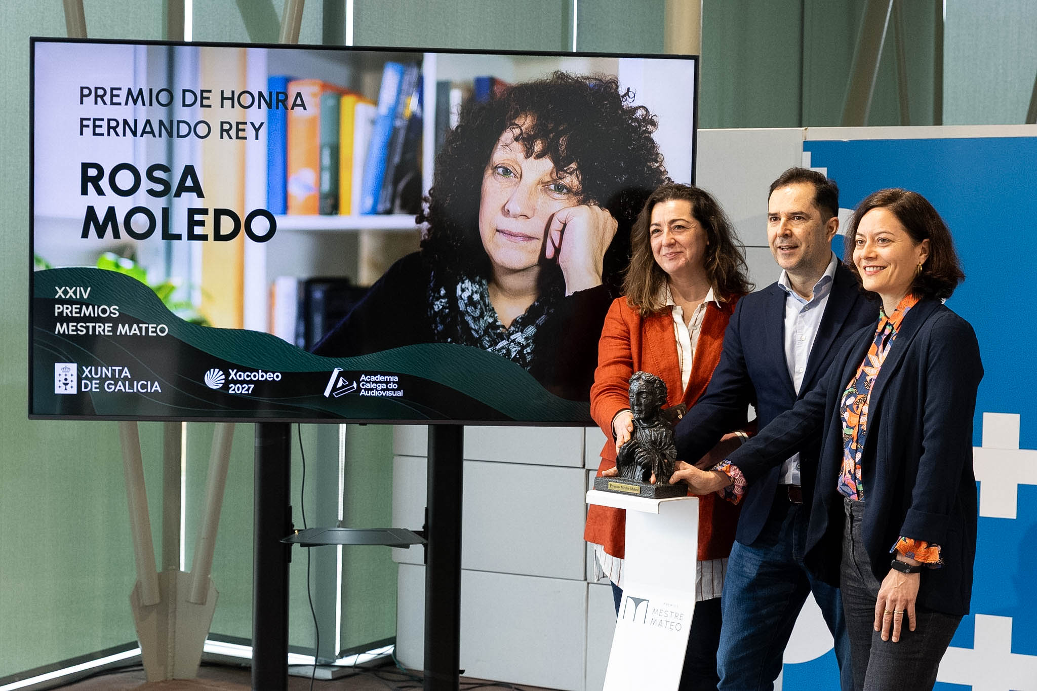A asesora lingüística e tradutora Rosa Moledo é a persoa galardoada este ano co Premio de Honra Fernando Rey dos XXIV Premios Mestre Mateo do Audiovisual Galego pola súa achega fundamental á calidade das producións de cine, televisión e plataformas. Así o anunciaron hoxe, nun acto celebrado na Cidade da Cultura de Galicia, o director da Axencia Galega das Industrias Culturais, Jacobo Sutil, e as presidenta e vicepresidenta da Academia Galega do Audiovisual, Lucía Veiga e Carmen Méndez, respectivamente.