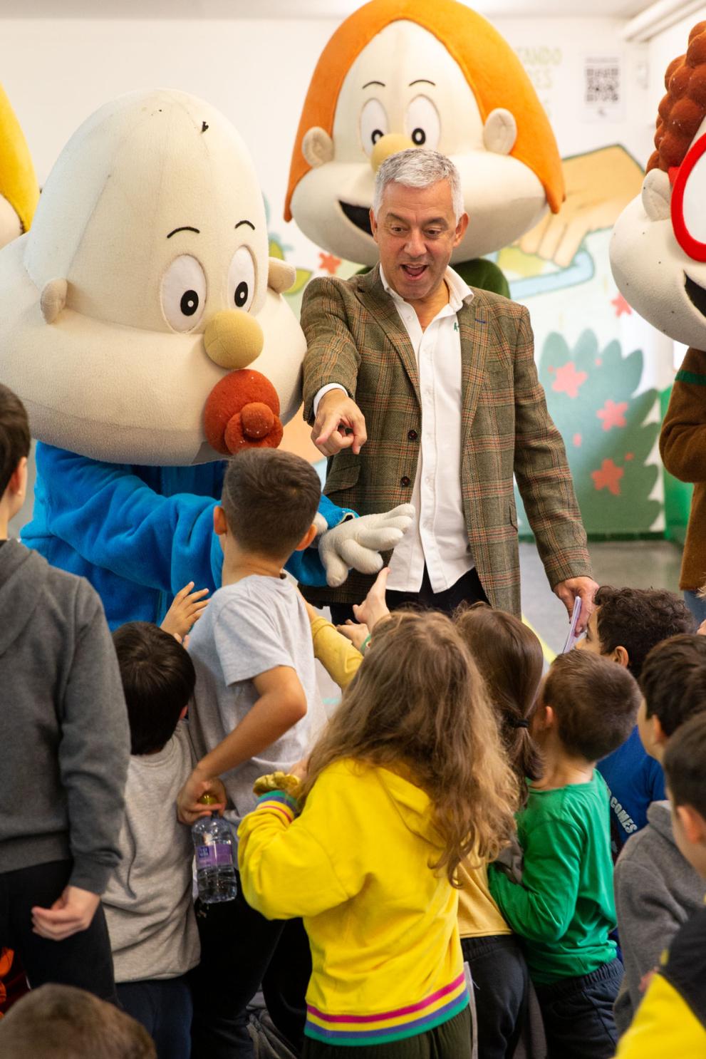 No acto tamén participaron a directora do colexio compostelán, María Jesús Pérez; a presidenta de FAGAMOS, Inmaculada Alonso, e os Bolechas corpóreos, que xogaron coa cativada do centro que asistiu de público á presentación.