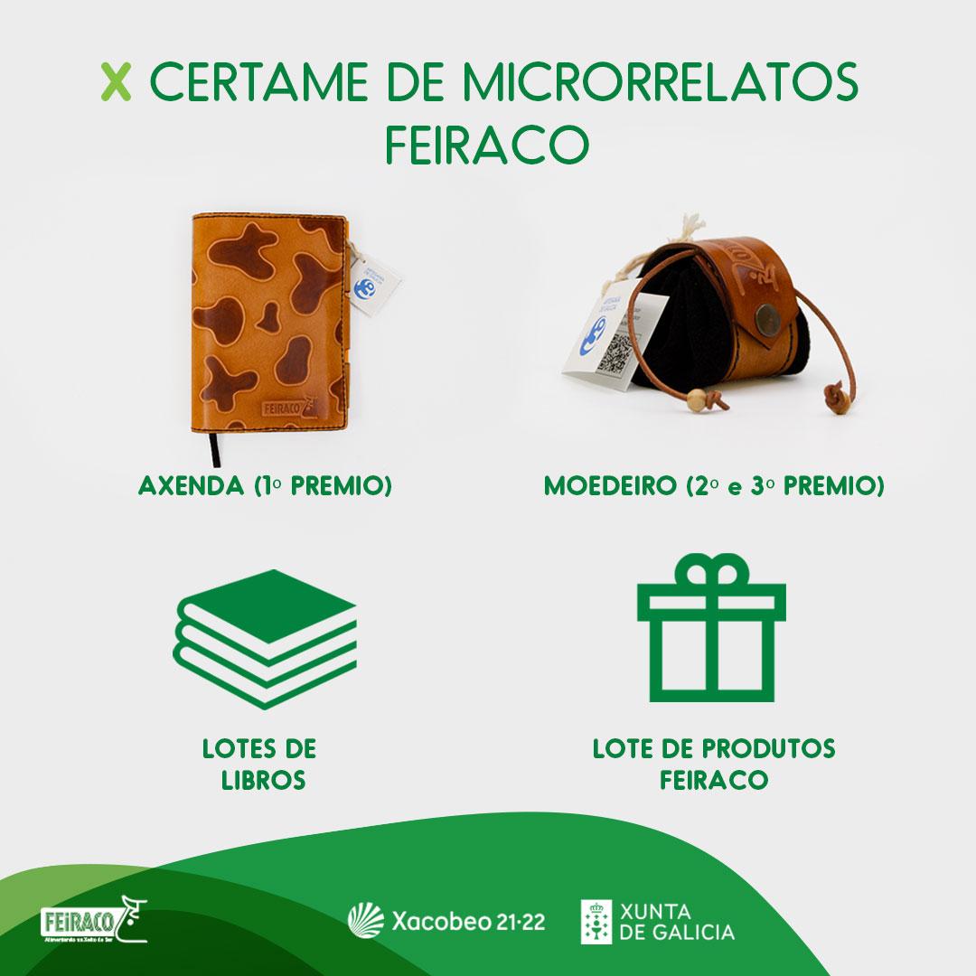 Premios: unha funda-block edición especial Feiraco elaborada pola artesá Cristina Valverde, dona da empresa Coiro Enxebre (1º premio), un moedeiro de coiro fabricado pola mesma artesá (2º e 3º premios), ademais de lotes de libros cedidos pola Secretaría Xeral de Política Lingüística e lotes de produtos Feiraco.