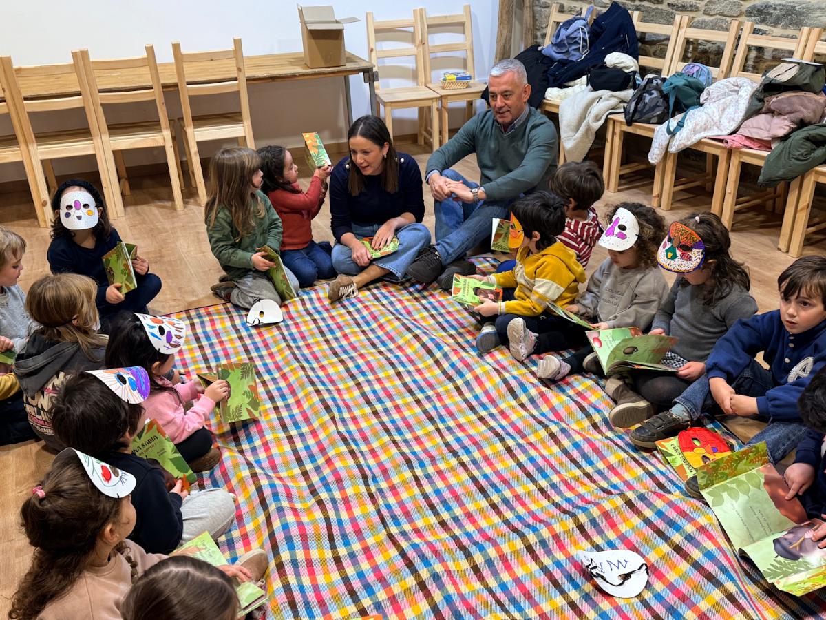 Lalín (Pontevedra), 2 de marzo de 2026.- O secretario xeral da Lingua, Valentín García, participou na presentación do libro A toupiña sabia, de Carlos Brea e Olalla Garra, que acolleu a escola infantil de Donramiro.