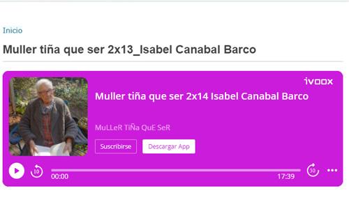 Entre as moitas actividades promovidas polo EDLG do CEIP Plurilingüe do Camiño Inglés podemos ver unha serie de podcasts sobre mulleres destacadas en distintos ámbitos. Nesta ocasión, o episodio céntrase na figura de Isabel Canabal Barco, unha galega do Boqueixón, case centenaria, que conta como foi a súa experiencia na escola e como era a educación daqueles anos.