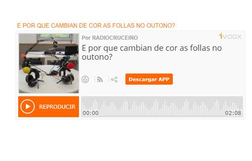 Desde a Radiocruceiro da biblioteca do CEIP Plurilingüe Cruceiro, o alumnado de 6º respóndenos a cuestións científicas moi curiosas como as seguintes: E por que a auga do mar é salgada? E por que o ceo é azul? E por que cambian de cor as follas no outono? etc.