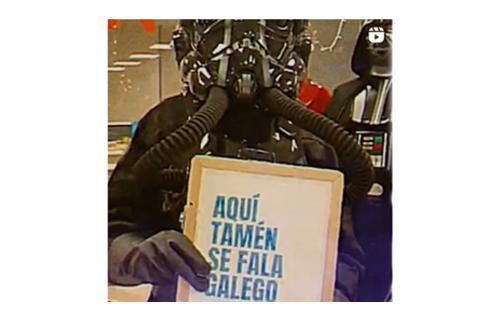 Moitas son as emocións vividas nos últimos tempos polo equipo promotor da campaña Aquí tamén se fala, pero ningunha comparable á experimentada no Hospital Materno Infantil Teresa Herrera. Un piloto imperial, un garda do emperador, Darth Vader, un soldado de asalto, un capitán do imperio, Darth Revan, un jawa de Tatoonie, o droide R5-J2 e mais o alumnado e os profesionais da aula hospitalaria do centro sanitario tamén se sumaron a esta singular iniciativa.