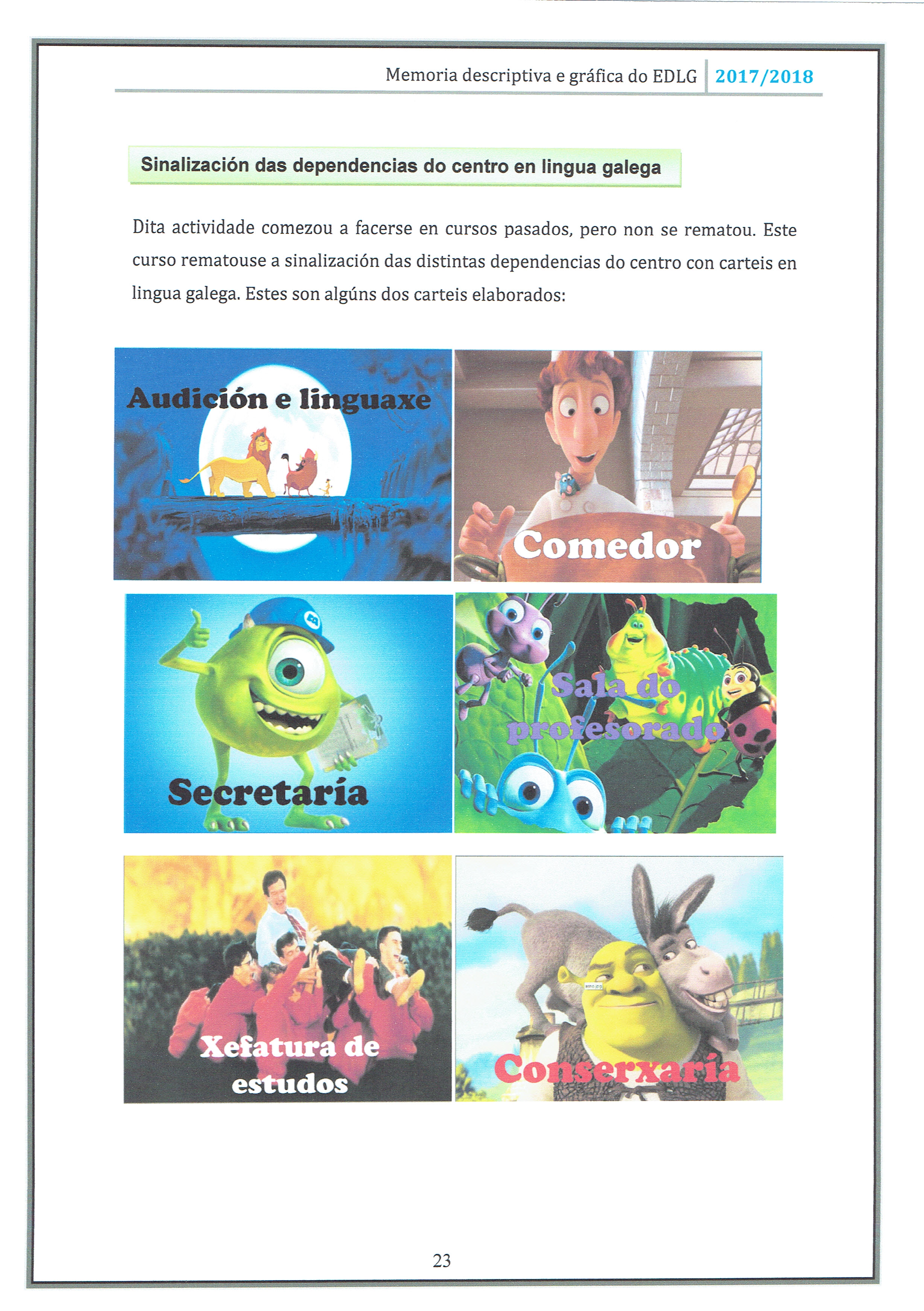 O CEIP Rosalía de Castro da Coruña sinalizou as dependencias do centro con estes divertidos carteis. A cartelaría non só servirá para que o alumnado saiba, sen dubidar, a onde dirixirse senón tamén para que aprenda cales son as palabras correctas en galego e non empregue tantos castelanismos.