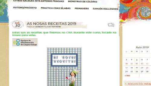 Un ano máis, os rapaces e raparigas do CRA de Monterrei, coa axuda do EDLG, agasállannos cun estupendo libro de terroríficas receitas para celebrarmos o Samaín.Se queres converterte nun terrorífico cociñeiro, anímate a facer as novas e ricas receitas que os nenos e nenas do CRA de Monterrei nos mandan para este tempo de outono e coas que celebran dun xeito divertido o samaín.