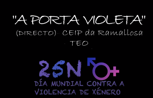 Emotiva interpretación en directo do profesorado e alumnado do CEIP da Ramallosa de Teo da coñecida canción "A porta violeta". En galego e tamén en lingua de signos podemos ler e escoitar as palabras coas que Rozalén expresou o sufrimento que experimentan moitas mulleres maltratadas e o desexo de se liberaren da violencia.