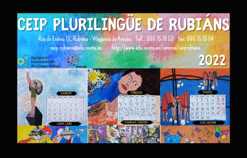 Coma cada xaneiro, o EDLG do CEIP Plurilingüe de Rubiáns preséntanos o seu calendario anual. Nesta ocasión, como podedes ver, dedícalle cada mes a unha artista diferente, con deseños creados polo alumnado.