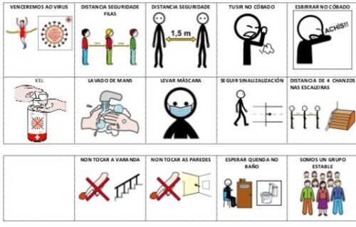 Neste enxeñoso chaveiro que aparece no blog AnxoPictogramas recóllense, a través do sistema de comunicación ARASAAC, todas as normas do protocolo anticovid-19. Así son accesibles a toda a comunidade educativa, incluído o alumnado con necesidades específicas de apoio educativos e dificultade de linguaxe.