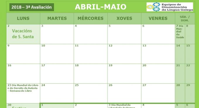 Logo de agasallarnos co calendario escolar do 1.º trimestre, o EDLG do IES da Pobra do Caramiñal en colaboración co Departamento de Orientación deste centro, comparte connosco os deseños correspondentes ao do 2.º e 3.º. No espazo web A Tabarra podedes descargar os arquivos en tamaño DIN A3 e DIN A4.
