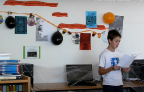 O alumnado de 1.º de ESO do IES Milladoiro de Ames participou na lectura dramatizada dalgunhas das historias de medo que, ata non hai moitos anos, formaban parte da vida cotiá do noso mundo rural e que atenuaban a angustia ante a morte. Tamén podemos ver unha mostra dos divertidos epitafios inventados polos rapaces e as rapazas deste centro.