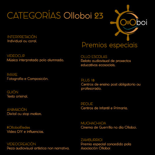A Asociación Cultural Olloboi organiza, un ano máis, o Festival de Cine Escolar Olloboi. No certame pode participar toda a comunidade educativa dos centros escolares (alumnado, docentes, ex-docentes, familias e persoal da Administración e Servizos). O prazo de presentación das pezas na plataforma olloboi.com remata o 5 de maio. Neste mesmo espazo, as persoas interesadas teñen á súa disposición obradoiros e recursos didácticos destinados a público de distintas idades, ademais dunha mostra de audiovisuais das edicións anteriores.