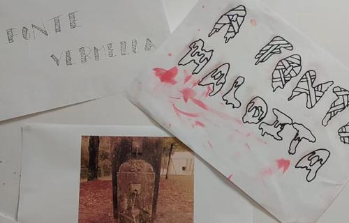 Orixinal proposta do EDLG do IES de Mos para animar o alumnado a que inventase titulares de medo baseados en imaxes de distintas zonas do instituto que previamente lles facilitaron. Coas creacións resultantes elaboraron un mural que formou parte da ambientación para o Samaín no centro.