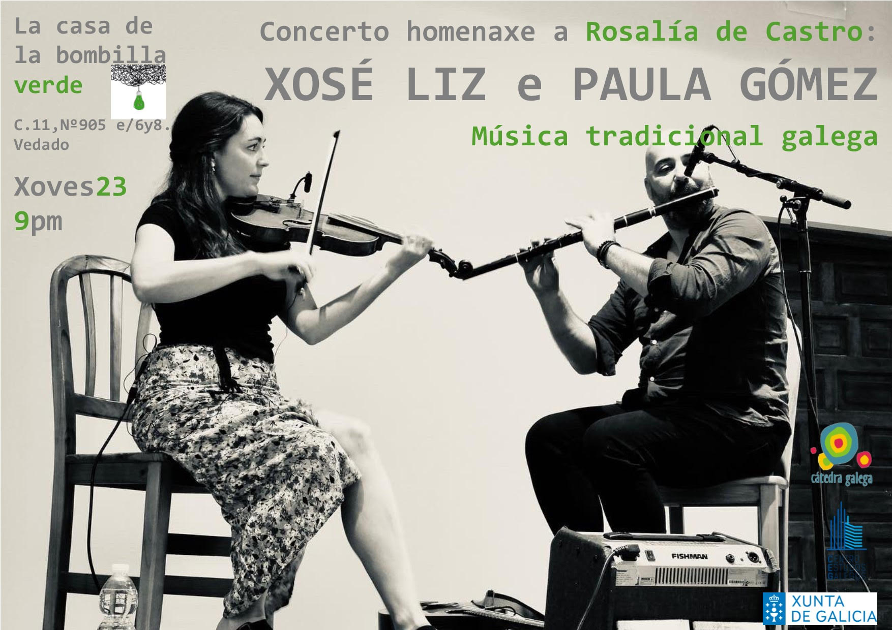 - A lectura de poemas de Rosalía de Castro acompañada polo dúo musical galego Xosé Liz e Paula Gómez