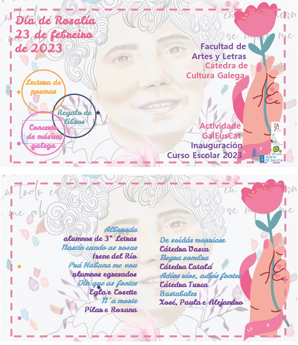 - A lectura de poemas de Rosalía de Castro acompañada polo dúo musical galego Xosé Liz e Paula Gómez