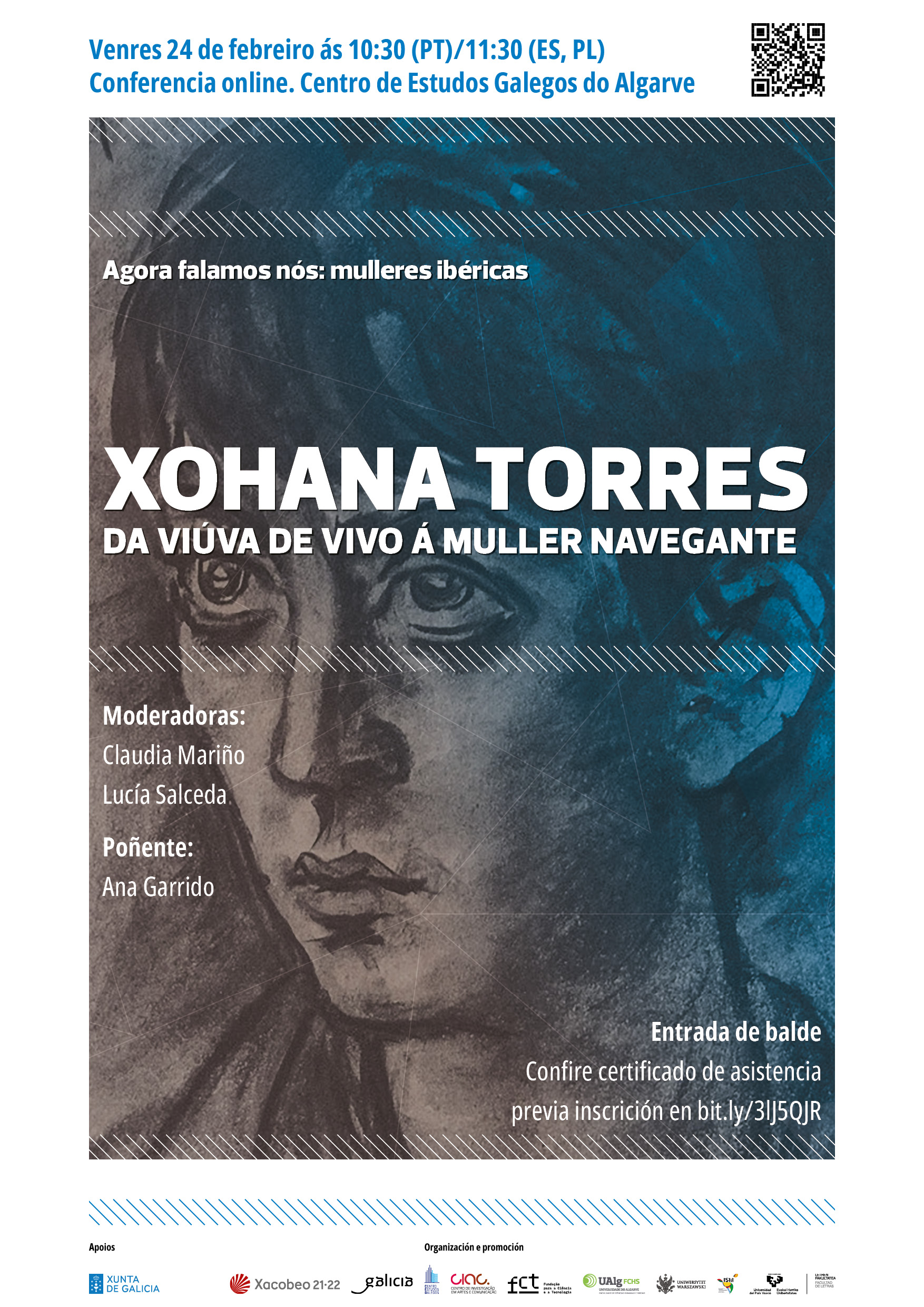 Os Centros de Estudos Galegos da Universidade do Algarve, a Universidade do País Vasco /Euskal Herriko Unibertsitatea e a Universidade de Varsovia organizan, en conxunto, a conferencia en liña "Xohana Torres: da viúva de vivo á muller navegante", impartida pola profesora Ana Garrido González (UW).