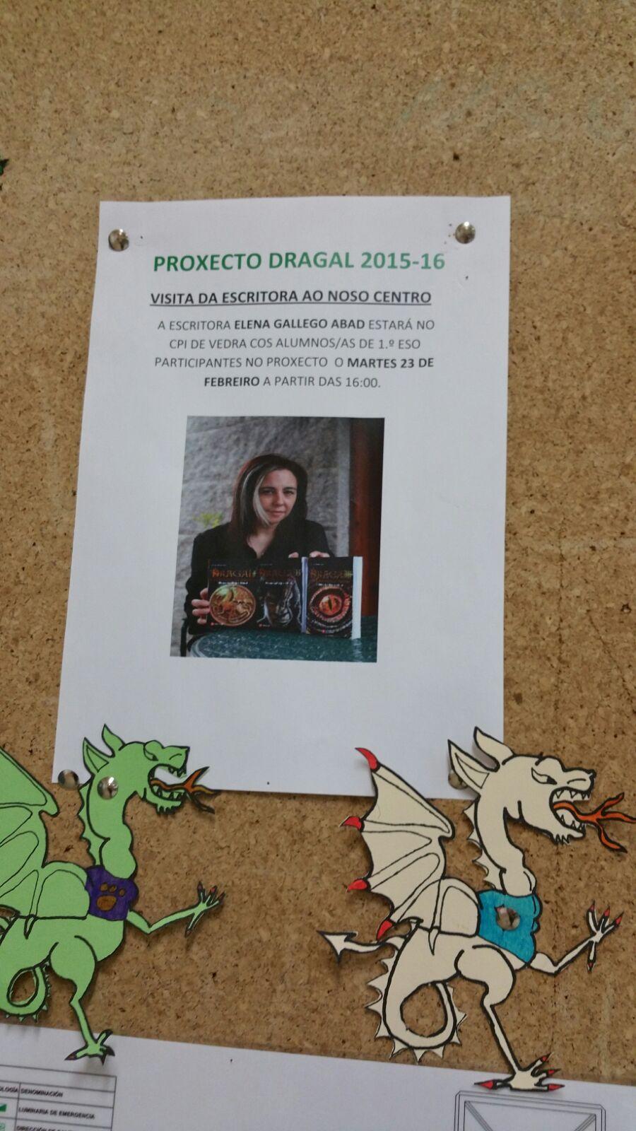 Despois de darlles a benvida aos membros da fraternidade do Dragal, a escritora da triloxía do dragón visitou os dragaliños/as durante o segundo trimestre deste curso 2015-2016.