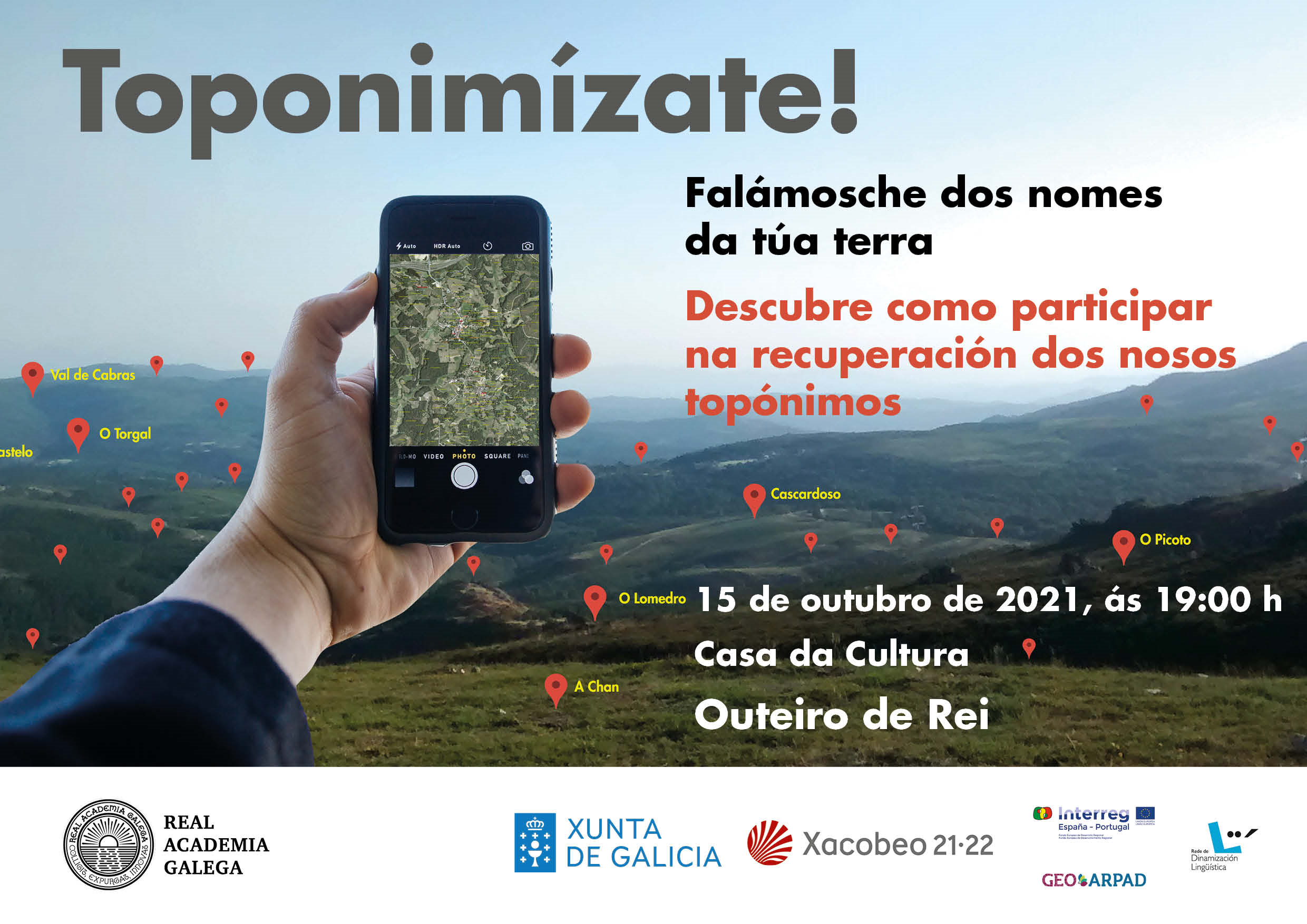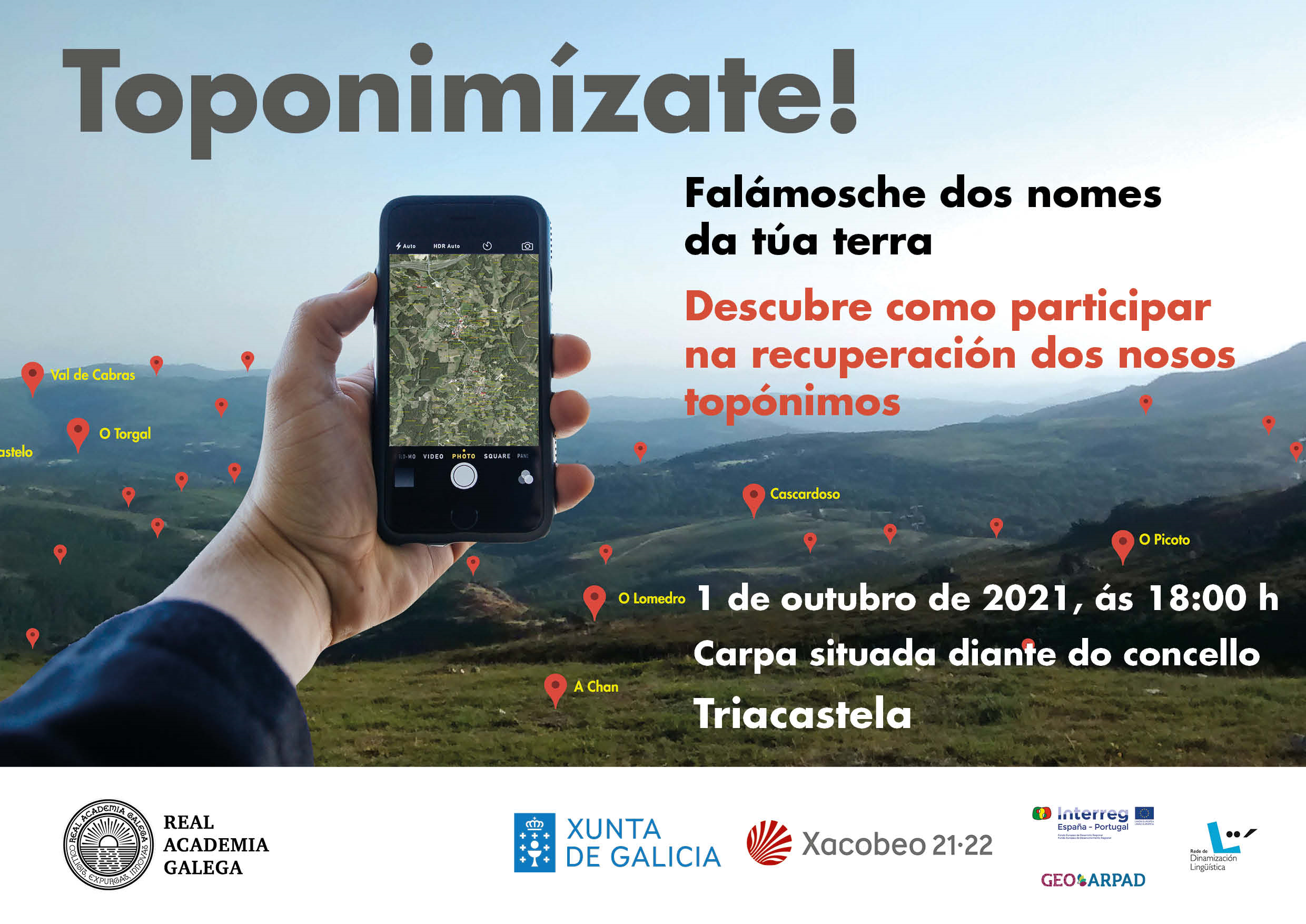 Retomamos, tras a obrigada parada que supuxo a pandemia, o programa de promoción da lingua galega Toponimízate. Falámosche dos nomes da túa terra. A acción enmárcase nos proxectos Toponimia de Galicia e GeoArpad, impulsados ambos os dous desde a Xunta de Galicia, e coordinarase desde a Real Academia Galega (RAG) en colaboración coa Secretaría Xeral de Política Lingüística.