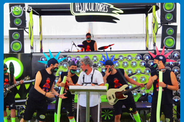 Festicultores Troupe presenta un novo espectáculo músico-teatral vangardista e retranqueiro, cheo de optimismo e de bo humor, co que busca contaxiar, a través da música, a ledicia e as ganas de vivir desde o seu innovador escenario móbil de tecnoloxía punta alieníxena-galaica.