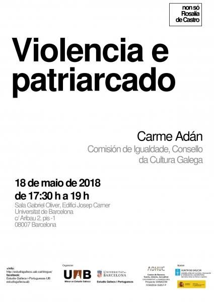 O Centro de Estudos Galegos da Universidade Autónoma de Barcelona programa a conferencia "Violencia e patriarcado", que impartirá a filósofa e profesora Carme Adán no marco do ciclo "Non só Rosalía de Castro" o 18 de maio.