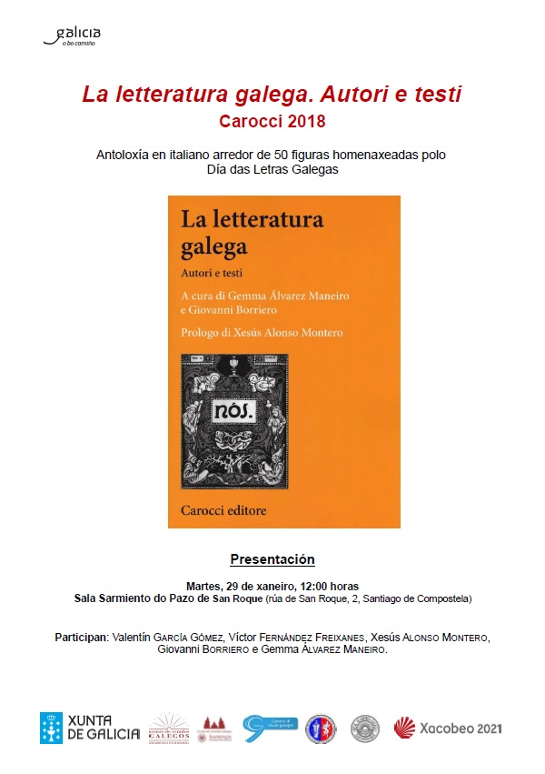 Os centros de estudos galegos de Padua, Roma e Perugia presentan, coa colaboración da Secretaría Xeral de Política Lingüística, o volume La letteratura galega. Autori e testi. Esta obra, publicada no marco da colección Finisterrae, ten como obxectivoofrecer unha referencia para quen se achegue ás letras galegas, así como abranguer o ámbito universitario e literario da Italia máis galega, da Galicia máis internacional.